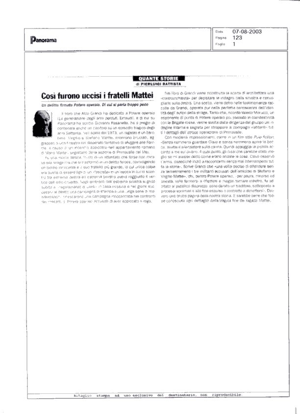 - PANORAMA: Quante storie, di Pierluigi Battista - 07 Agosto 2003